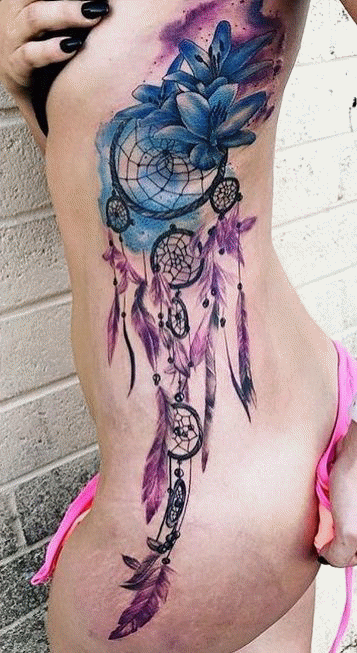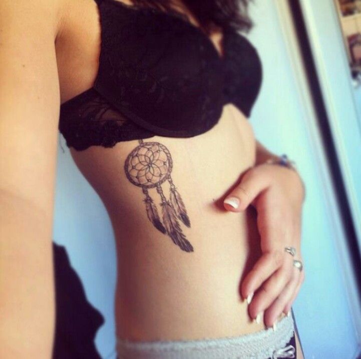 Татуировка на боку у девушки – ловец сновТатуировка на боку у девушки – ловец снов