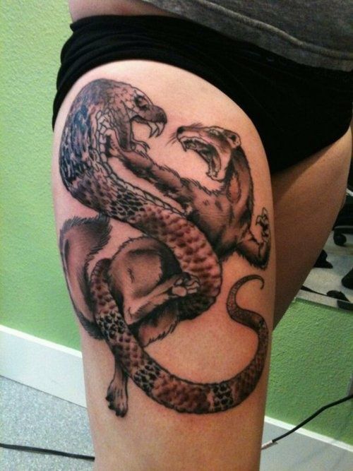 Мангусты — настоящие «полицейские». Они всегда хотят быть на высоте, бороться за свое мнение – эта особенность очень важна для людей, у которых есть татуировки с этими животными.