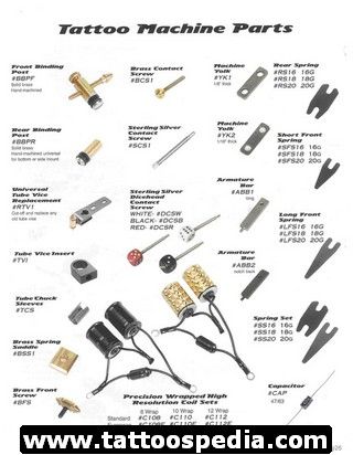 Катушка тату-машинки состоит из станины станка (разница между штамповкой, литьем, проволочной резкой и ручной сваркой), электромагнитных катушек, конденсаторов, арматурного стержня, пружины, контакта винт и т.д., каждый нужен.