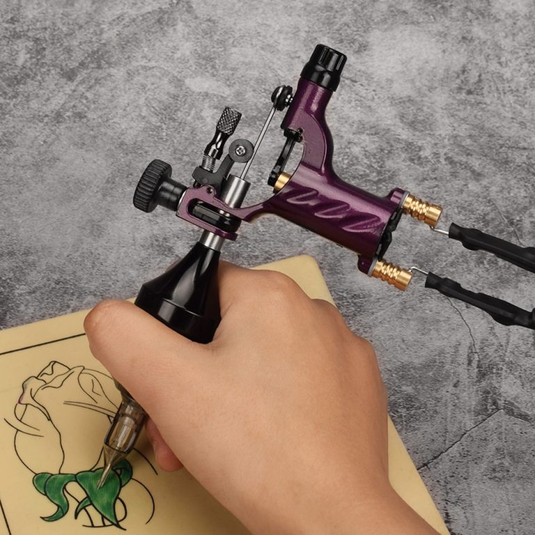 Роторная машина — очень хороший выбор для начала работы в тату-индустрии по нескольким причинам. Настройки практически отсутствуют, и их легко настроить при запуске. Вес делится в 3 раза по сравнению с катушечными машинками, что делает практику татуировки более приятной . Опора очень эргономична, рукава подходят для любого типа хвата. Есть комплекты роторных станков для начинающих по доступной цене. Это правда, что комплекты для катушек дешевле, но вы увидите, что они быстро останутся в шкафу, когда вы переключитесь на роторную машинку.
