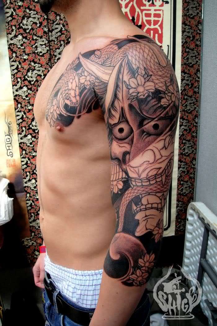 Японские мифологические вымышленные персонажи часто имеют двоякое значение. Татуировка маски Ханья обозначает, что ревность и гнев чаще всего являются предшественниками разочарования и отчаяния. Продолжительная и счастливая жизнь должна сопровождаться всепрощением и состраданием к близким.