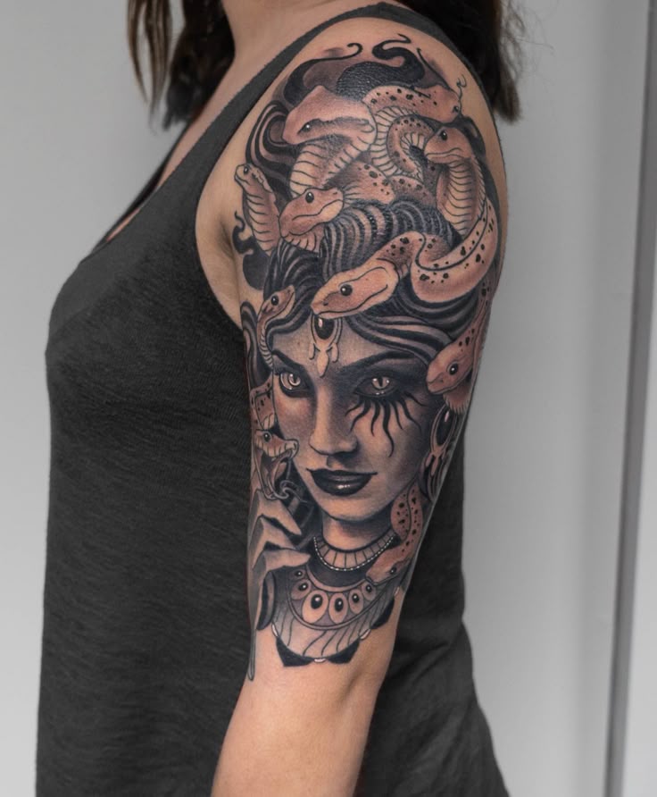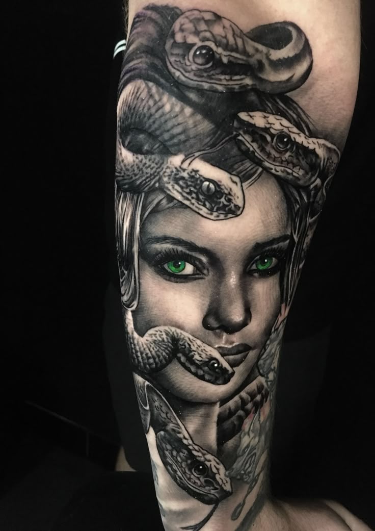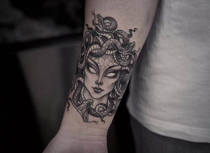 Кроме того, учитывая запутанные волосы Медузы в виде дикой змеи, одного этого символа может быть достаточно для татуировки всего рукава Медузы или, по крайней мере, половины рукава.