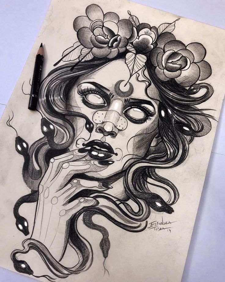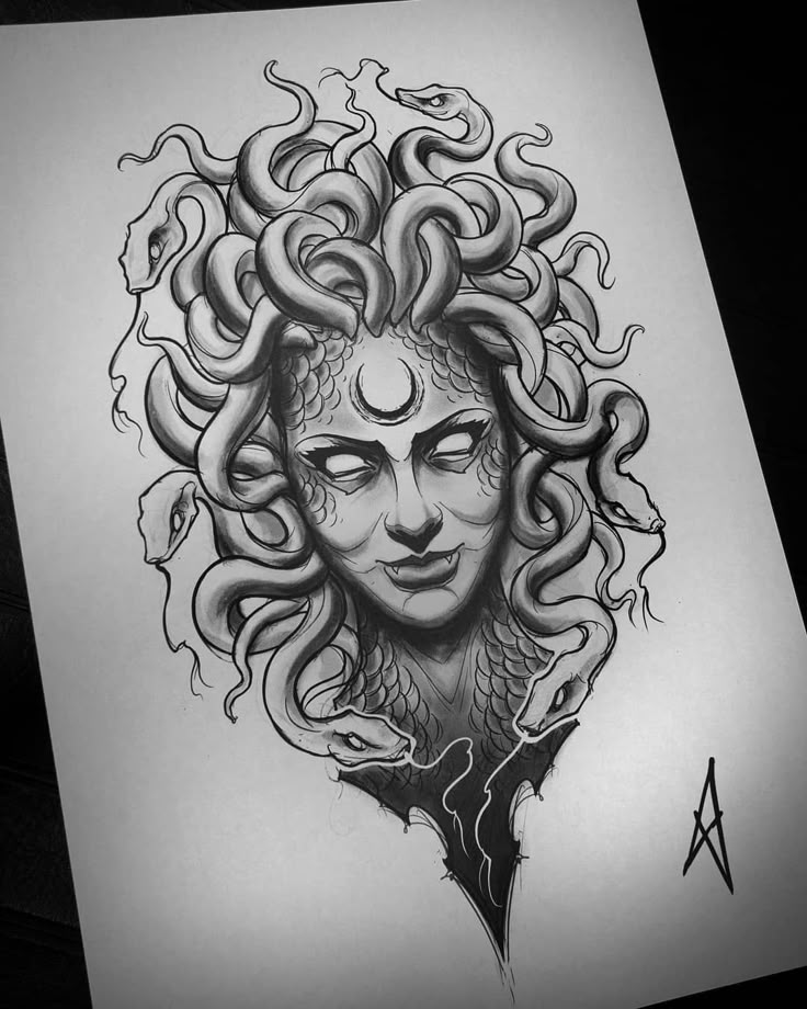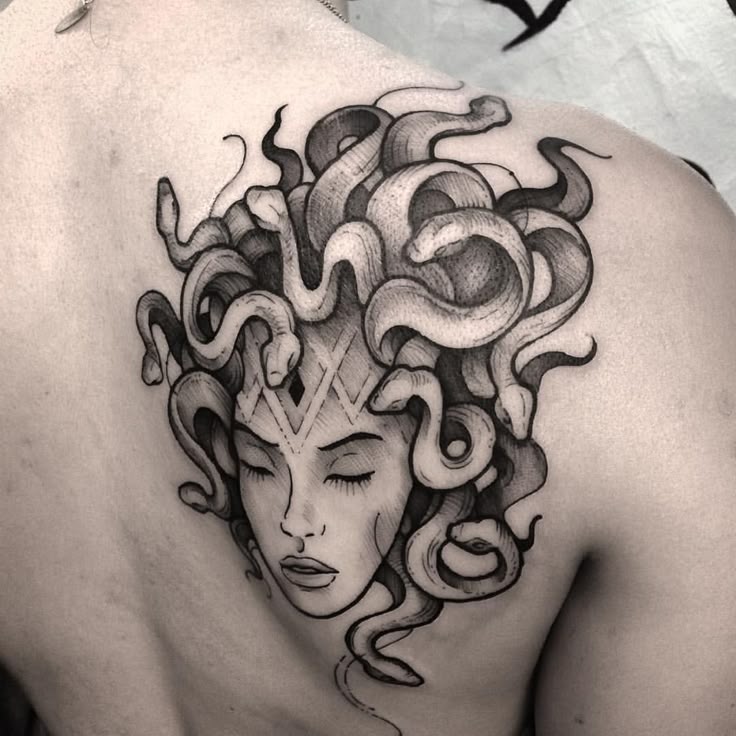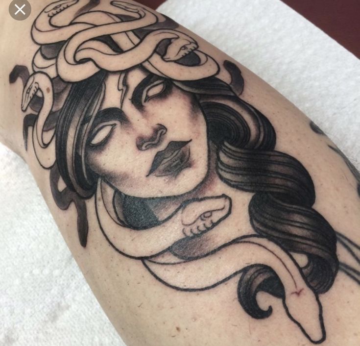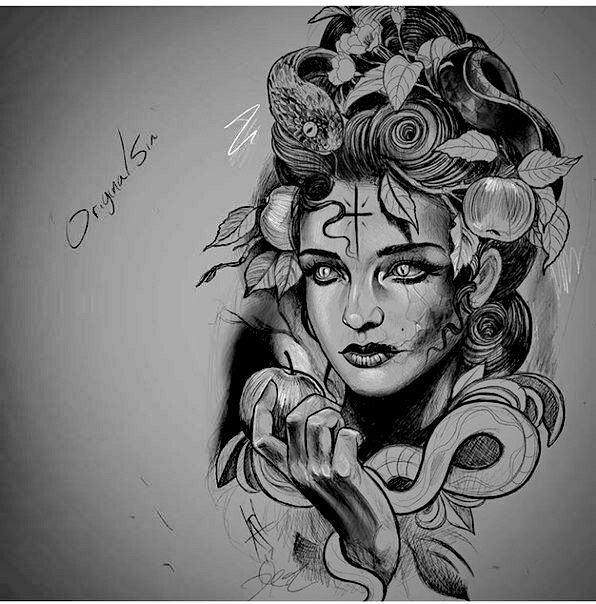 Ее миф трагичен, женщина, которая была рождена богами, но брошена в смертную жизнь и проклята как отвратительная женщина со змеиными волосами. Интересно, что и это, и противоположное значение может использоваться, когда кто-то делает татуировку Медузы.