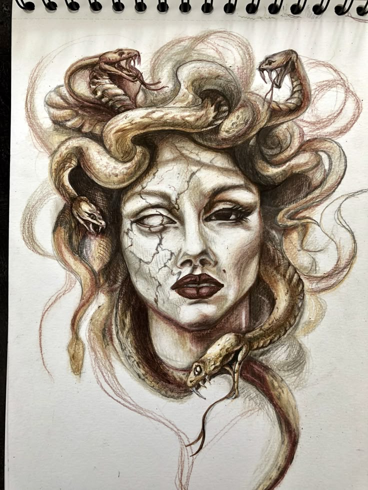 В то время как описания Медузы варьировались от прекрасной до гротескной, от прекрасной до чудовищной, она наиболее известна тем, что вместо волос на голове у нее живые ядовитые змеи, а также способность превращать тех, кто смотрит ей в глаза, в камень.