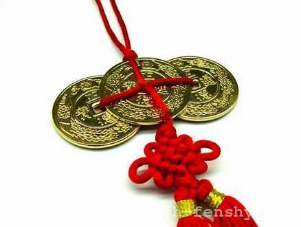 мистический узел на связке трех монет фен-шуй