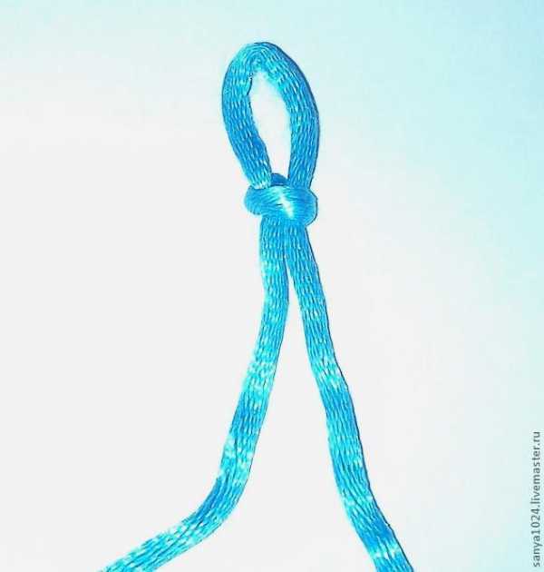 Берем шнурок, оплавляем кончики, складываем пополам и завязываем в середине петельку: