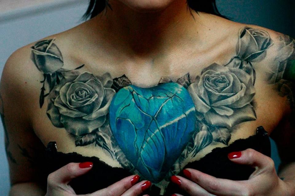 Также популярностью татуировки на груди среди женщин пользуются изображение цветов.