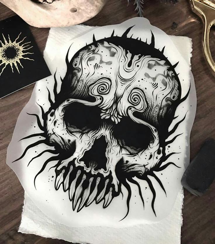 Заранее все изучите и примите верное решение, стоит ли делать тату с эскиза с черепом или не стоит. Возможно ли, что с годами вам может разонравится тот образ жизни, который окружает вас сегодня. В любом случае, решать вам.