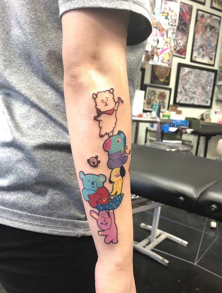 Используя толстые темные линии, Hugo Tattooer демонстрирует более беззаботную сторону черной работы (жирные линии) с милыми персонажами из мультфильмов и фильмов, таких как Baymax и Totoro .Ты не получишь страшную татуировку ах бенг под его часами!