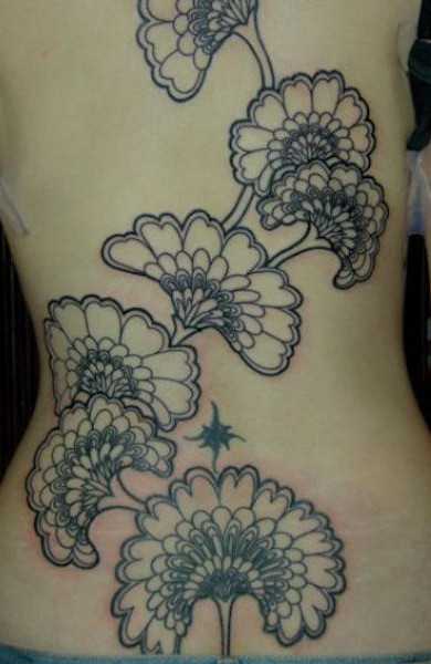 Тату в виде бабочек, цветов и узоров – чаще всего накалывают на пояснице. Продемонстрировать татуировки на копчике можно очень легко. Джинсы и юбки на низкой посадке, короткие топы и блузки открывают низ спины, позволяя окружающим любоваться рисунком.