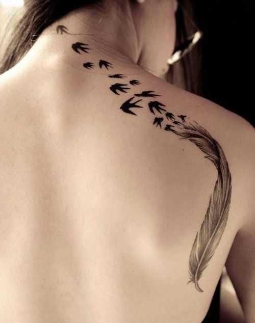 Женские тату с птичками очень популярны среди девушек, которые хотят показать свое стремление к независимости и поставленной цели, несмотря на все преграды. Очень эффектно выглядит тату пера или одиноко парящей птицы.