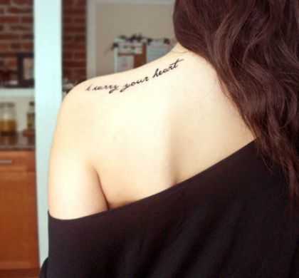Мужчинам нравится рассматривать такие тату у девушек и женщин, когда выпадает возможность. Татуировки делают их носительниц индивидуальными и помогают им выразить себя лучшим образом. Из знаменитостей татуировку на лопатке носит Анджелина Джоли. Отечественная модель Алена Шишкова тоже имеет красивую надпись, сделанную на английском, на лопатке.