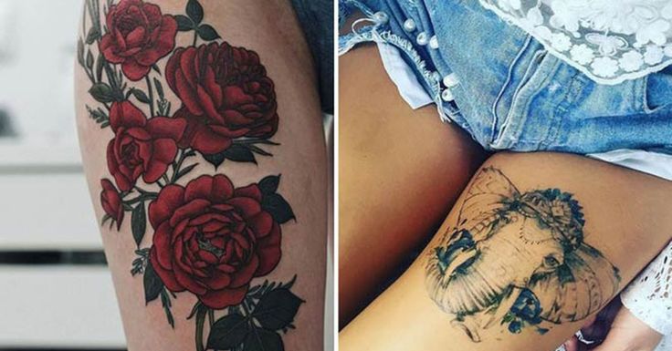 Они выглядят устрашающе, но добавьте к ним несколько роз, и они будут иметь навязчивый, но красивый эффект. - Животных — действительно всех видов. Львы, волки, птицы, совы и т. д. Разные животные обычно представляют разные вещи, поэтому тщательно выбирайте и исследуйте. Если у вас есть домашнее животное, вы также можете сделать татуировку с ним на бедре.