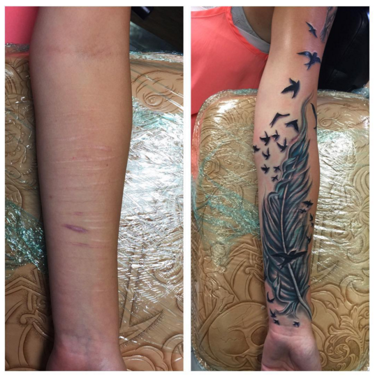 Можно сказать, что художник нарисовал цветок таким образом, что идеально соответствует шраму. Я в восторге.![]()
