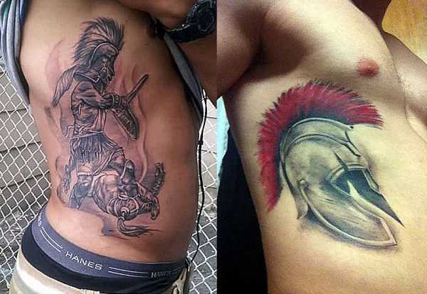 Лучшие мужские тату на ребрах с спартанцем и шлем спартанцаВсе большую популярность приобретают тату в стиле “олд скул”. Это такие себе рисунки, пришедшие к нам из 90-х. Они проверены временем и до сих пор прекрасно и стильно смотрятся на теле.