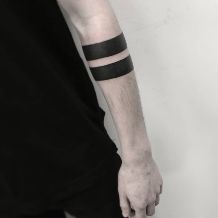 Татуировка в две линии на предплечье — потрясающая идея. Обе линии могут быть тонкими, толстыми или их комбинацией. При различных формах он выглядит как браслет.