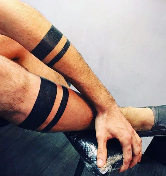 Татуировки в виде линий популярны, поскольку они могут быть выполнены в различных рисунках. Они оба привлекают внимание, будь то две широкие линии или жирная и узкая линия. Вы можете использовать черные чернила или другой цвет для раскрашивания. Из-за гибкости этой татуировки вы можете иметь разные рисунки на двух линиях, чтобы придать ей особый вид.