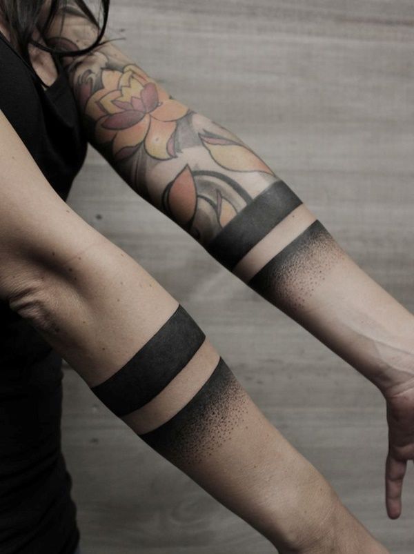 В этом контексте сплошная черная полоса на руку является одним из основополагающих аспектов многих таких племенных татуировок. Основная сплошная черная полоса может складываться вдвое или быть украшена дополнительными значимыми мотивами, такими как геометрические узоры и узоры в стиле определенной культуры.