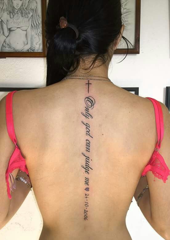 Тату надпись на позвоночнике