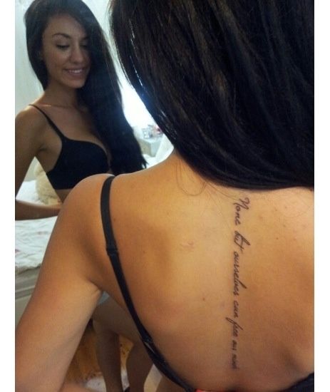 Тату надпись вдоль позвоночника