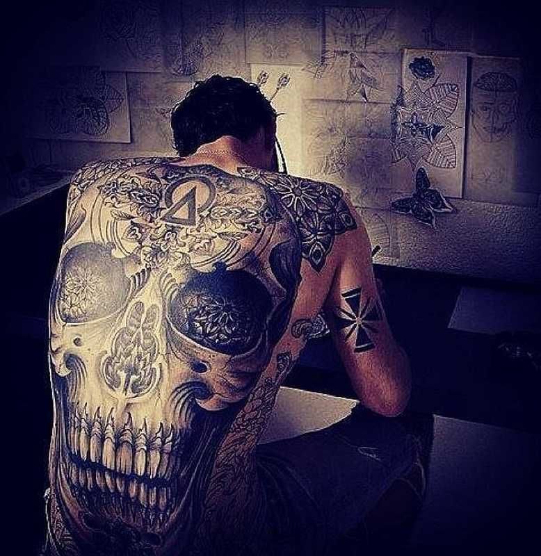 Эти гигантские татуировки на спине могут занять более 30 часов! Татуировка черепа на спине с множеством мелких деталей займет некоторое время.