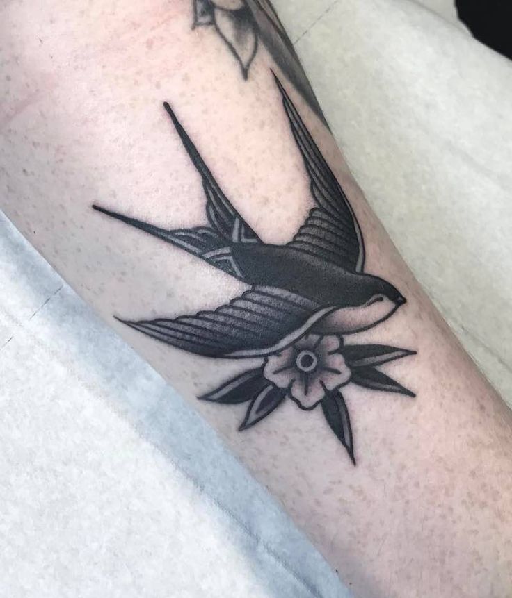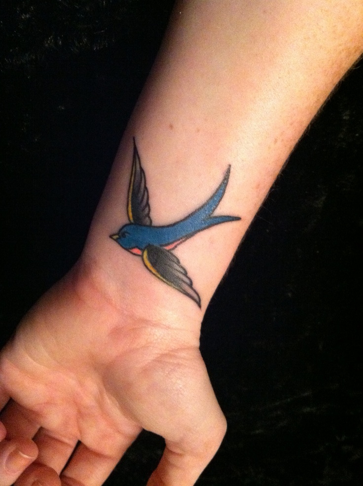 Происхождение татуировки ласточки восходит к историческому мятежу на корабле под названием The Swallow , где семь мятежников сделали татуировку ласточки на груди для облегчения идентификации. С тех пор моряки делают тату по разным причинам, например, видят в море ласточку, синюю птицу или воробья, что означает, что поблизости есть земля. Ласточки известны тем, что возвращаются домой к своим товарищам на всю жизнь, что символизирует верность.
