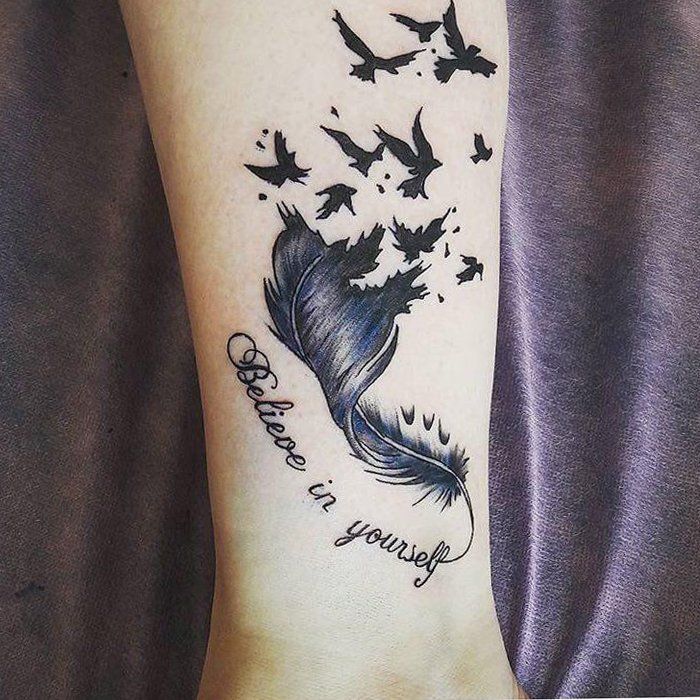 Тату птицы с надписью на запястье для девушек