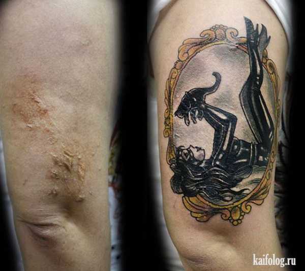 Если у вас на теле есть некрасивый шрам или родимое пятно, которого вы стыдитесь (стесняетесь, смущаетесь), не расстраивайтесь, так как его несложно превратить в предмет гордости. И для этого вовсе не нужно обращаться к бабкам, колдунам и магам, это подвластно обычным мастерам тату. Кстати, у меня у самой есть подобное тату, так как на ноге был ужасный шрам от ожога: попила кофейку. 🙂 У нас на сайте уже много раз выходили прикольные и необычные тату, но вот тату на шрамах выходят впервые. Жду ваши комментарии по этому поводу.