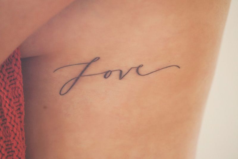 Такие тату-надписи про любовь занимают не так много места. Поэтому их легко нанести на палец, ключицы, район шеи. Также эти надписи легко спрятать под одеждой, разумеется, если татуировка не сделана нарочито крупной. Однако такой вариант встречается редко. Это обусловлено тем, что надписи в крупном варианте не смотрятся выигрышно. А это не совсем подходит девушкам.