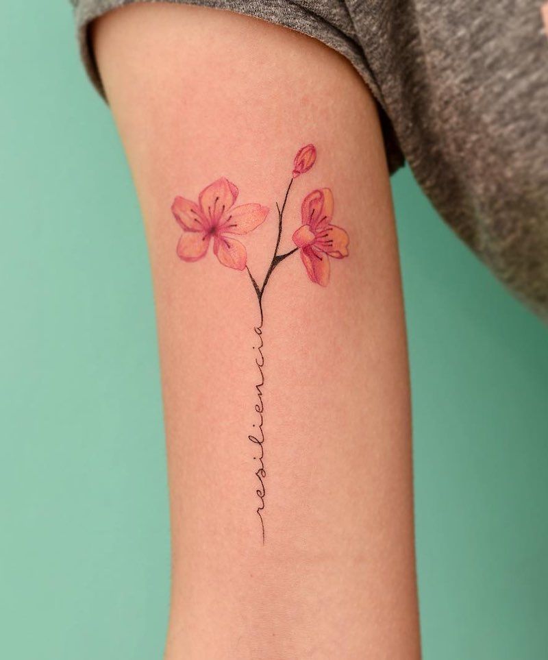 Цветок сакуры имеет небольшой размер, поэтому отлично подходит для маленьких тату. В японских татуировках ее часто дополняют изображениями ветра или воды. - Тату лилии. Как и лотос, цветок лилии означает чистоту и духовность. В разных культурах значение тату лилии может отличаться. В древнем Египте она была символом плодородия, тогда как в средневековые времена символизировала невинность. В некоторых культурах лилии являются обязательным атрибутом свадеб, поскольку олицетворяют союз и прочные отношения. В татуировках можно встретить разные сорта лилий: тигровая говорит о гордости и процветании, оранжевая выражает ненависть.