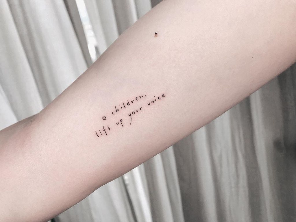 значимая татуировка цитирует слова конструкции, означающие простой shinecoco запястье