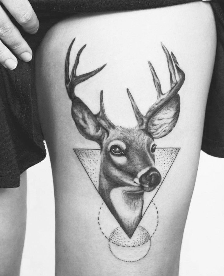 Хотя татуировки оленя в основном носят мужчины, они прекрасно смотрятся и на женщинах!