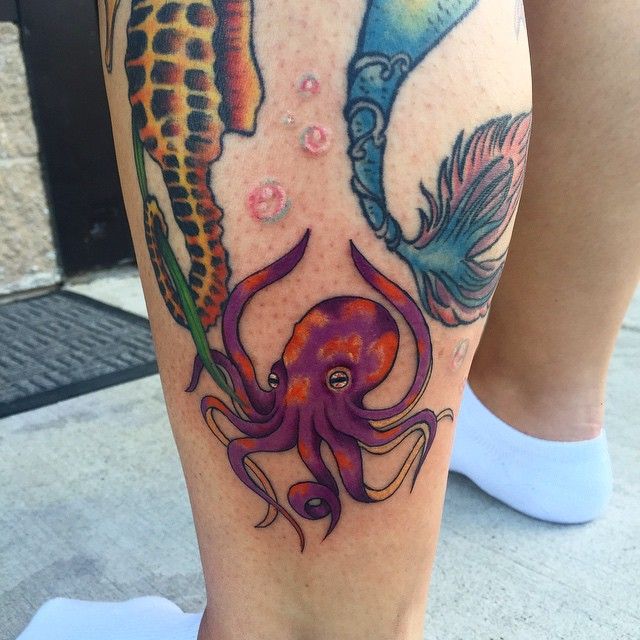 Татуха на голени девушки – осьминог