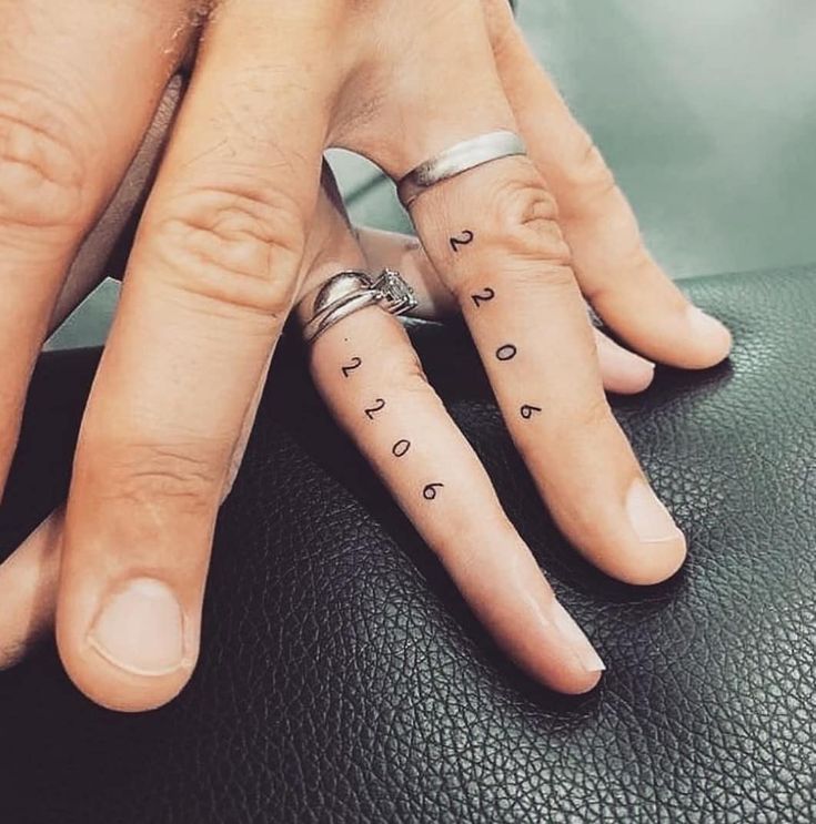 Современные любовные партнеры выбирают парные татуировки на пальцах в виде обручального кольца на безымянном пальце или по бокам пальцев, на костяшках пальцев или на внутренней стороне пальцев в виде сдержанных чисел, символов или скрытого языка. Правильное размещение татуировки подчеркивает красоту ваших пальцев.![]()