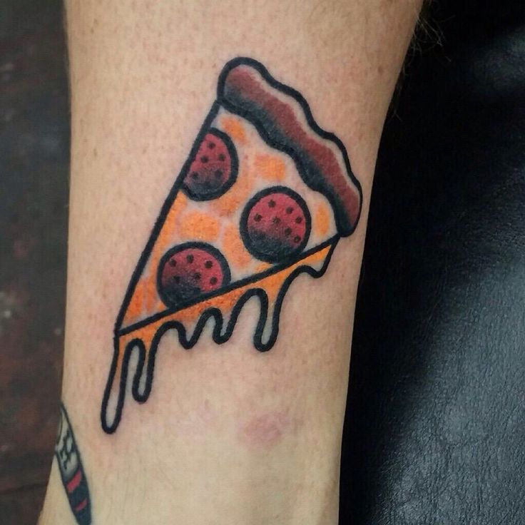 Этот кусок пиццы кажется таким заманчивым. Это идеальное место для этой татуировки, и ее легко заметить.