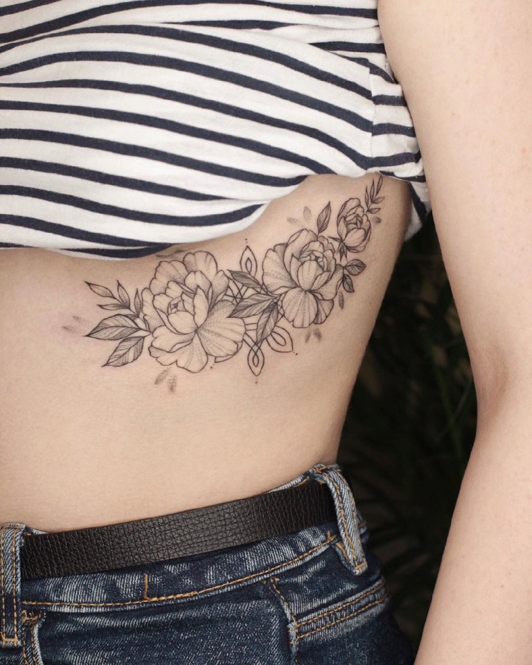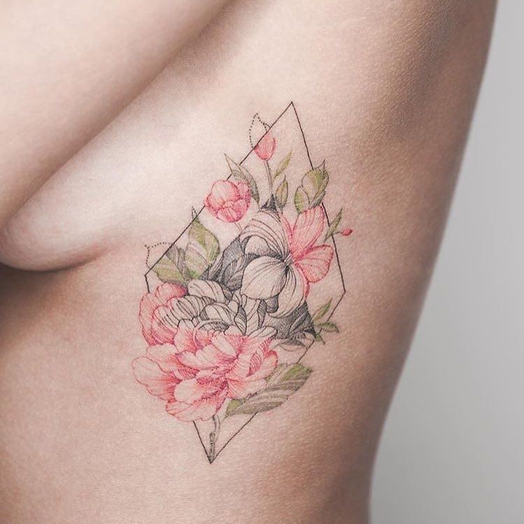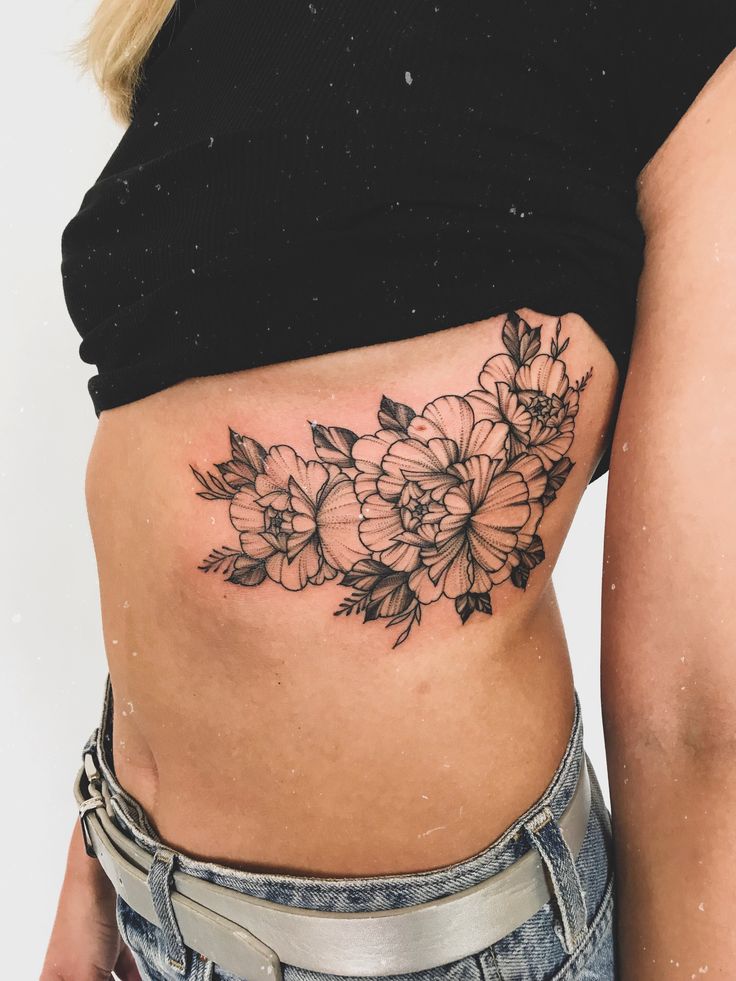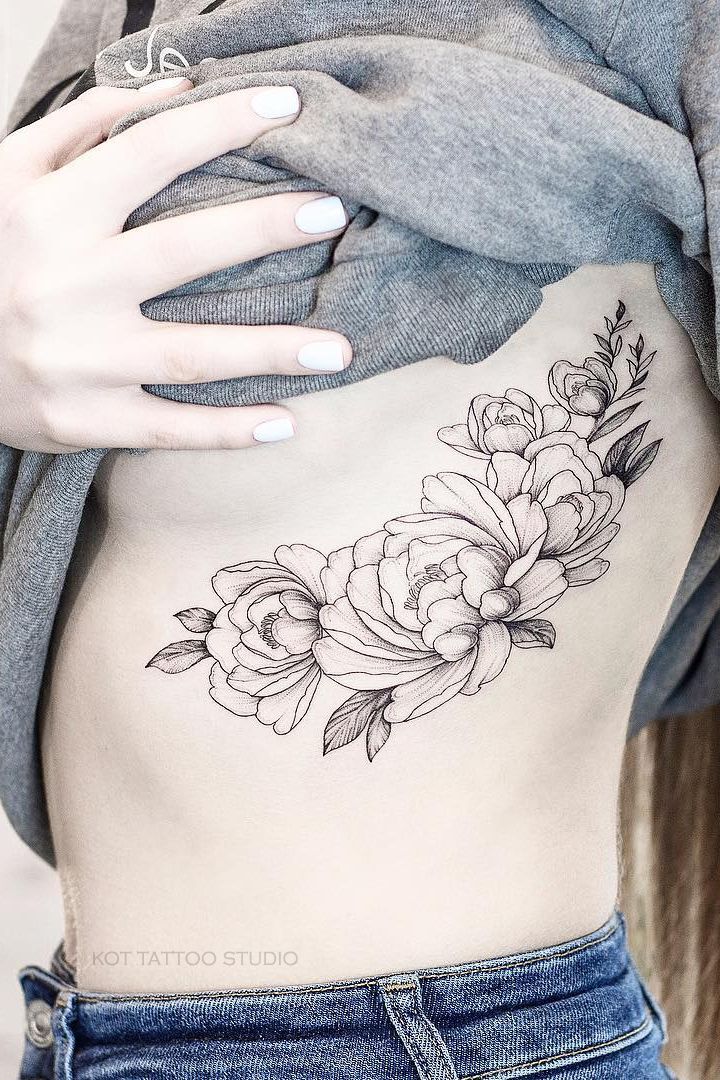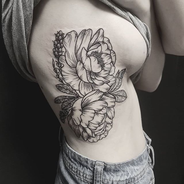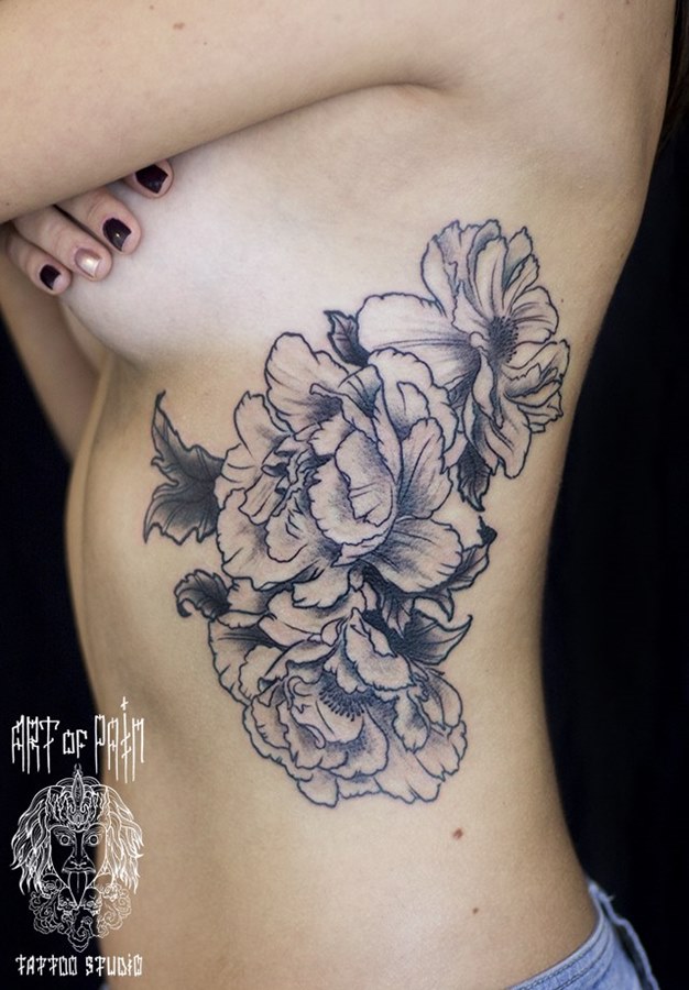 Тату пионов на ребрах — 103 лучших фото татуировок 2022 года