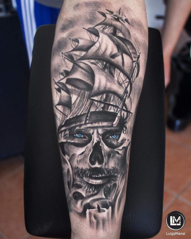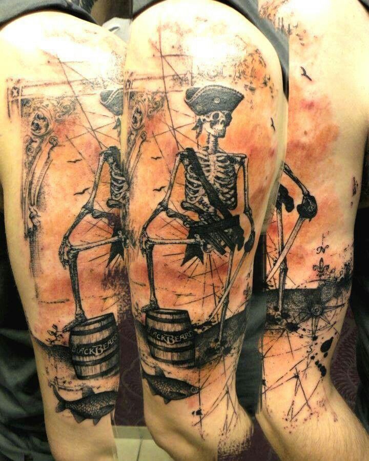 Принимая во внимание все эти факты, мы рекомендуем вам попробовать пиратские чернила на груди или спине. Но вы также можете работать с запястьем, предплечьем, бедром и ступней.