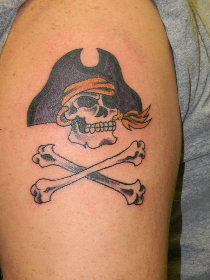 1. Простая татуировка с черепом и скрещенными костями — классический пиратский символ.