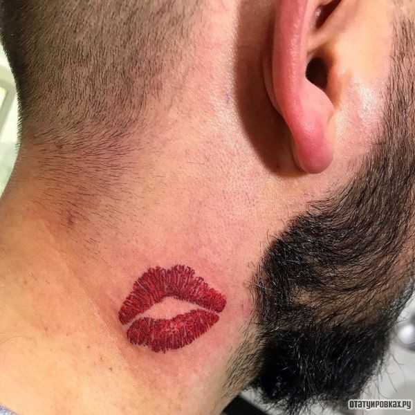 На мужском теле татуировка в виде поцелуя женских губ обозначает любовь молодого человека к слабому полу. Обладатель рисунка – это ценитель женской красоты, который отлично разбирается в девушках. Подобный эскиз не сделает неуверенный в себе мужчина. Такое изображение подойдёт такому парню, который знает, как себя вести с представительницами прекрасного пола для того, чтобы завоевать их симпатию.