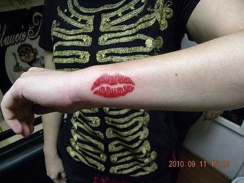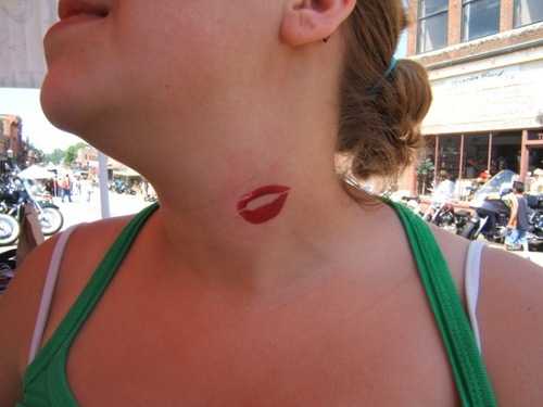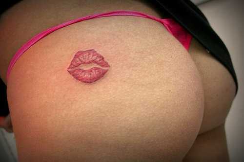 В сегодняшнем выпуске одна из самых тупых задумок для тату – “поцелуйчик” или отпечаток губной помады. Зараза эта пришла к нам из-за бугра, где тамошние баклажаны афроамериканские представители реп-культуры начали украшать свои тела “губками”. После них в нашей стране розовымя пятнами стали себя украшать как местные репперки, так и соременные хипстеры.Женское же население не брезгует наносить на себя “вечную помаду” после Бритни Спирс, которая так же таскает на себе татуировку в виде отпечатка помады на руке. А стадный инстинкт в нашей стране хорошо развит, ой как хорошо. Теперь у среднестатистической ванильной россиянки на ряду с надписью\кошечкой\цветочком\звездочкой, обязательно должен быть поцелуйчик.