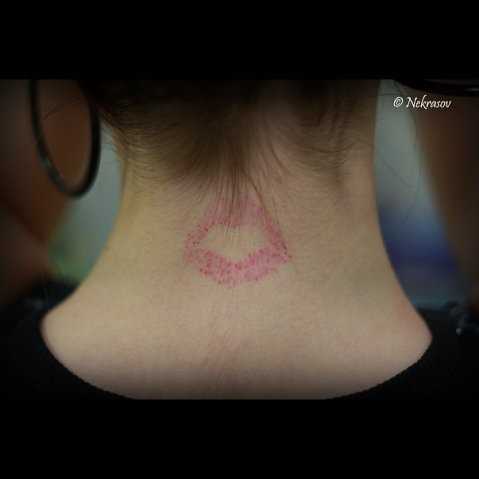 Чаще всего, тату поцелуйчик-экзема выглядит так.