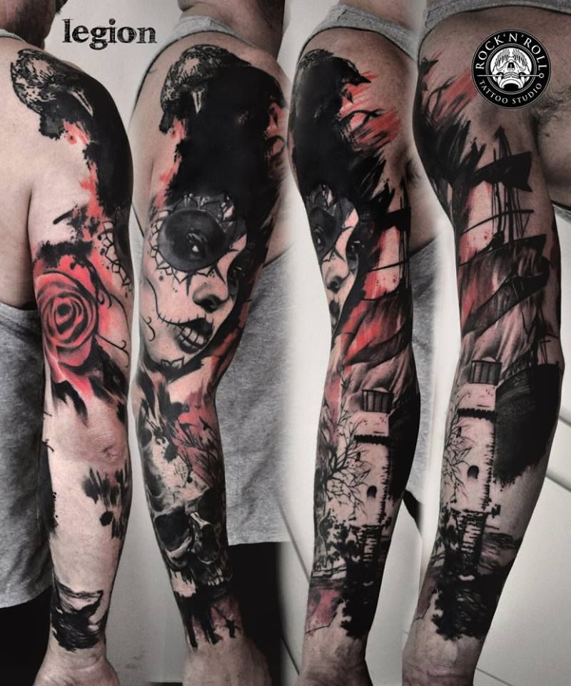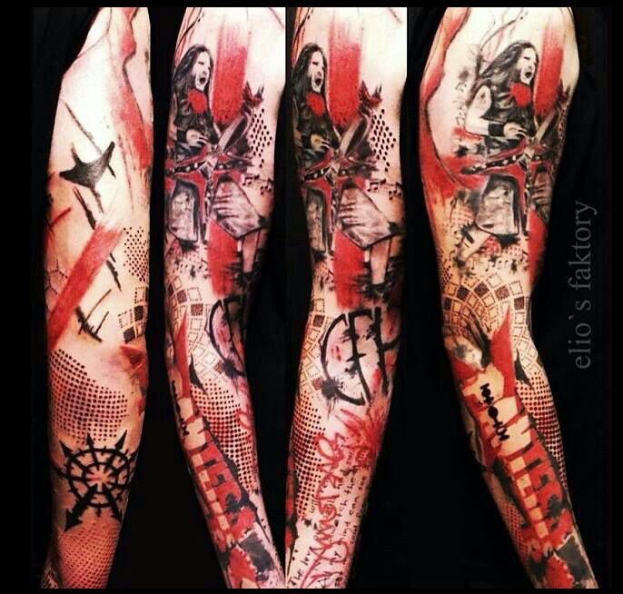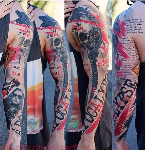 Тату Трэш-полька — фото татуировки рукава Trash polka
