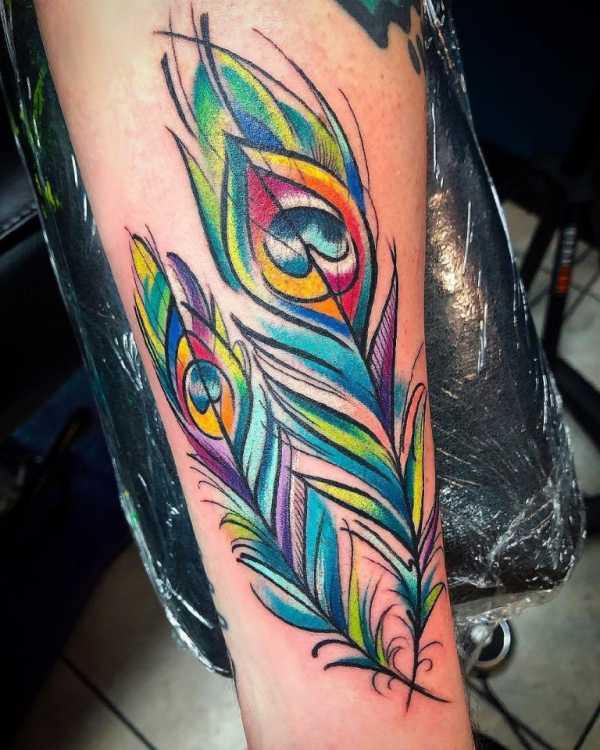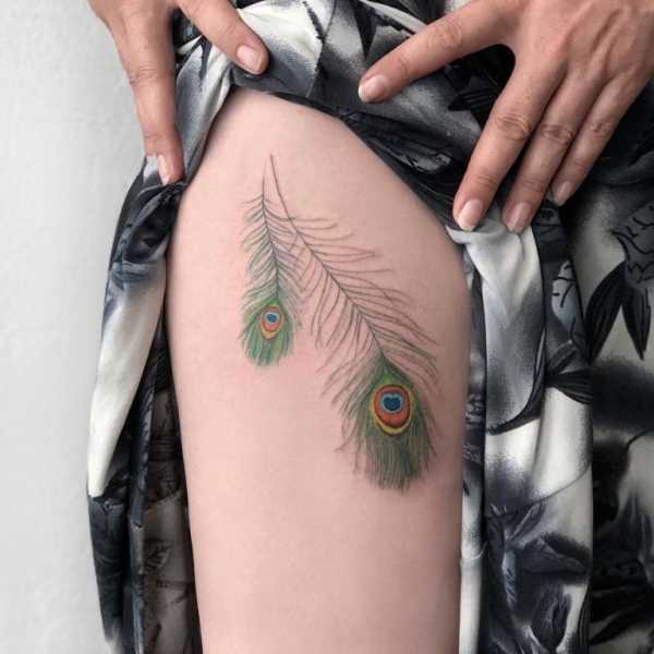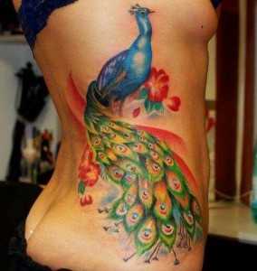 Тату пера павлина. Эта птица ассоциируется с красотой, элегантностью и грацией. Однако в религиозном контексте, она означает обновление. Чаще всего женские тату встречаются на запястье, на ребрах и на спине. Мужчины предпочитают носить цветное тату на руке, за ухом или на шее.