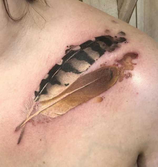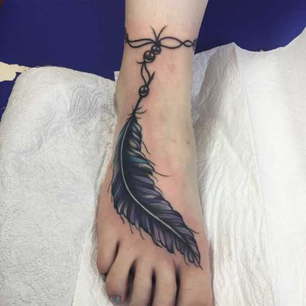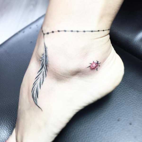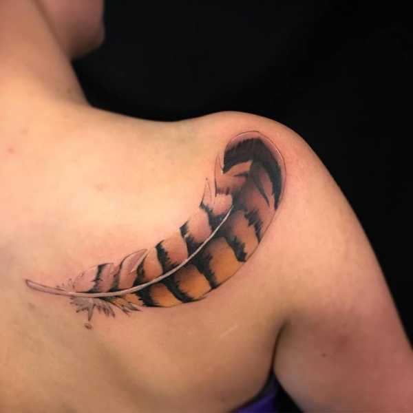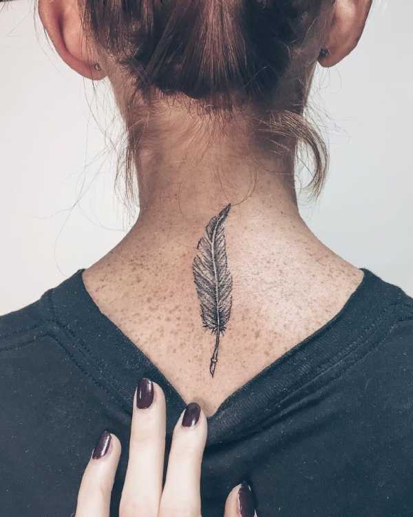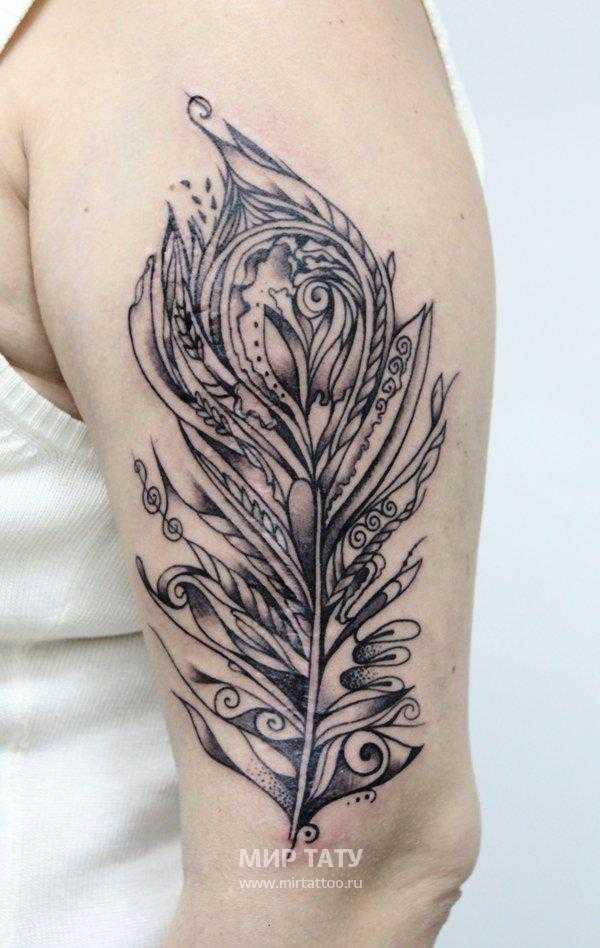 Привлекательно и сексуально смотрится изображение птицы в районе декольте в богатом и ярком оперенье. Красиво получается простая картинка с каплями росы, так как в древних народов перья ассоциировали с дождем и плодородием. Привлекательно смотрятся тату перо на лодыжке, ключице, лопатке, руке, наружной части бедра, особенно в реалистичном стиле. Хорошо выглядит небольшое перышко на запястье или пальце.Интересно получается аккуратное перо под грудью, повторяя ее контур. Привлекают внимание три или два пера с бисером или цветочной композицией вокруг запястья, щиколотки. Первоначально тату в виде пера были распространены в Северной Америке, среди коренных жителей.