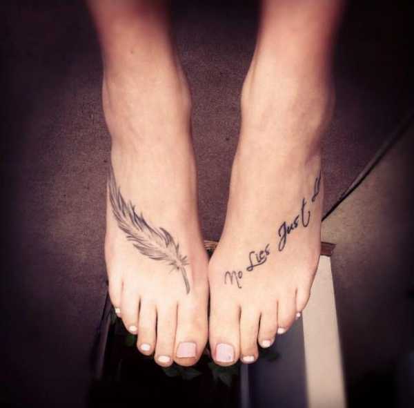 Тату перо птицы Феникс. Древние люди считали, что Феникс – это птица, возрожденная из пепла. Согласно греческой мифологии, перышко Феникса может дать его владельцу вечную жизнь. Поэтому, татуировка является синонимом бессмертия. Обычно, тату набивается на щиколотке, груди и спине.