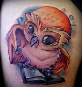 Тату перо совы. В греческой мифологии сова символизирует Афину богиню мудрости, поэтому этот мотив в татуировках обозначает разум и интеллект. Татуировка в виде пера совы может нести множество разных значений, но в основном, она представляет защиту, преобразование, свободу, адаптивность и хитрость. Популярным местом для тату у девушки является предплечье, а у парней – шея.