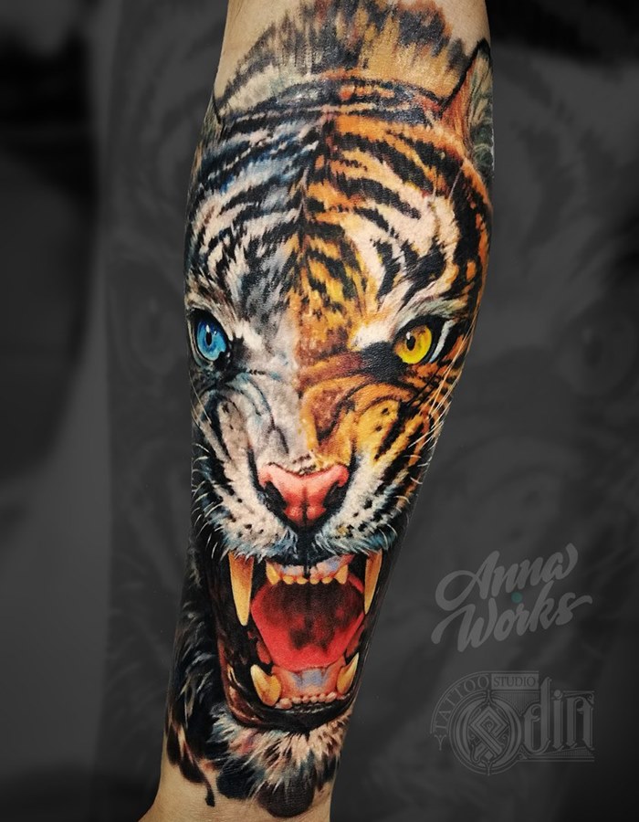 Тату голубоглазый тигр