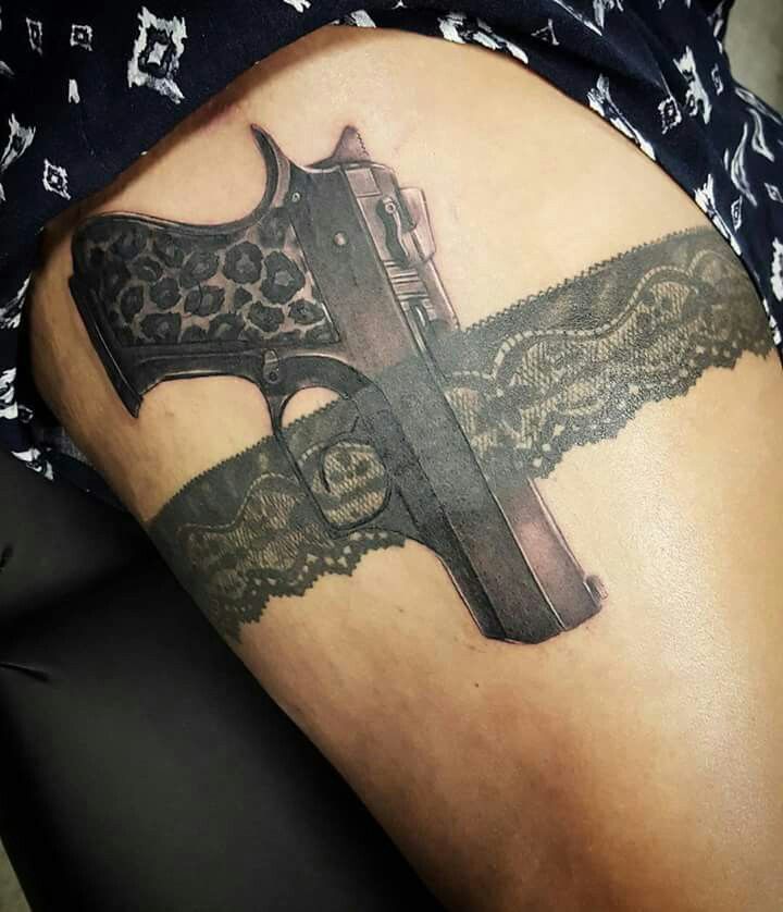 Идея его размещения интересна и необычна, так как многие люди имеют татуировки с изображениями оружия на ногах или руках. Это отличный вариант для мужчин и женщин всех возрастов.