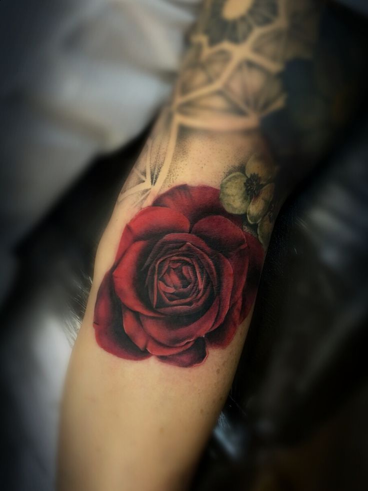 Можно сказать, что роза имеет большую ценность в западном мире, как и цветок лотоса на Востоке .Роза символизирует чистую любовь, страсть и красоту. Чувственность, которую он излучает, и популярность этого цветка в его самом романтическом контексте сделали его одним из самых популярных и востребованных цветочных тату для людей всех полов.