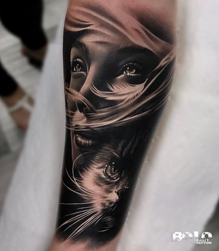 Фото крутой татуировки в стиле реализм на рукаве девушки